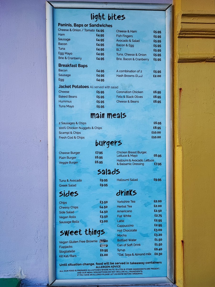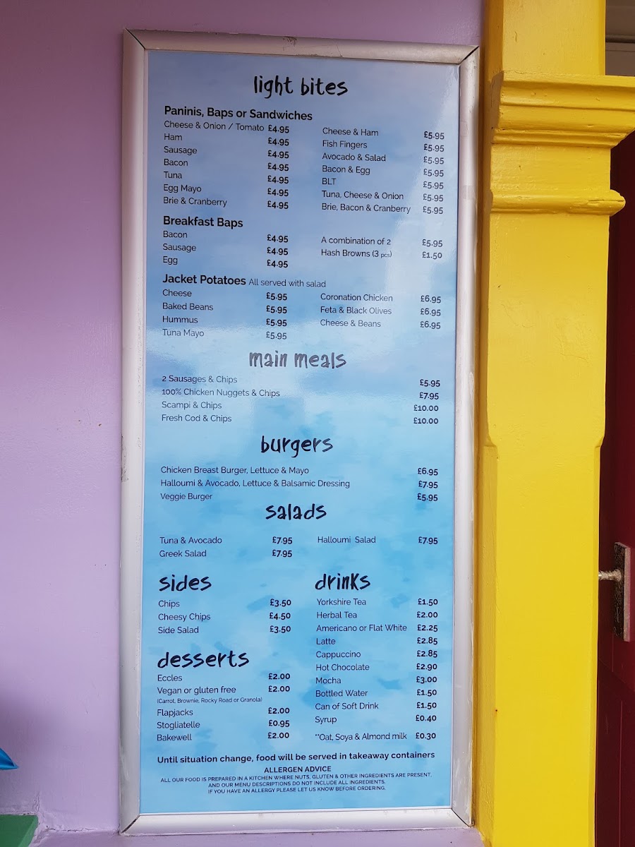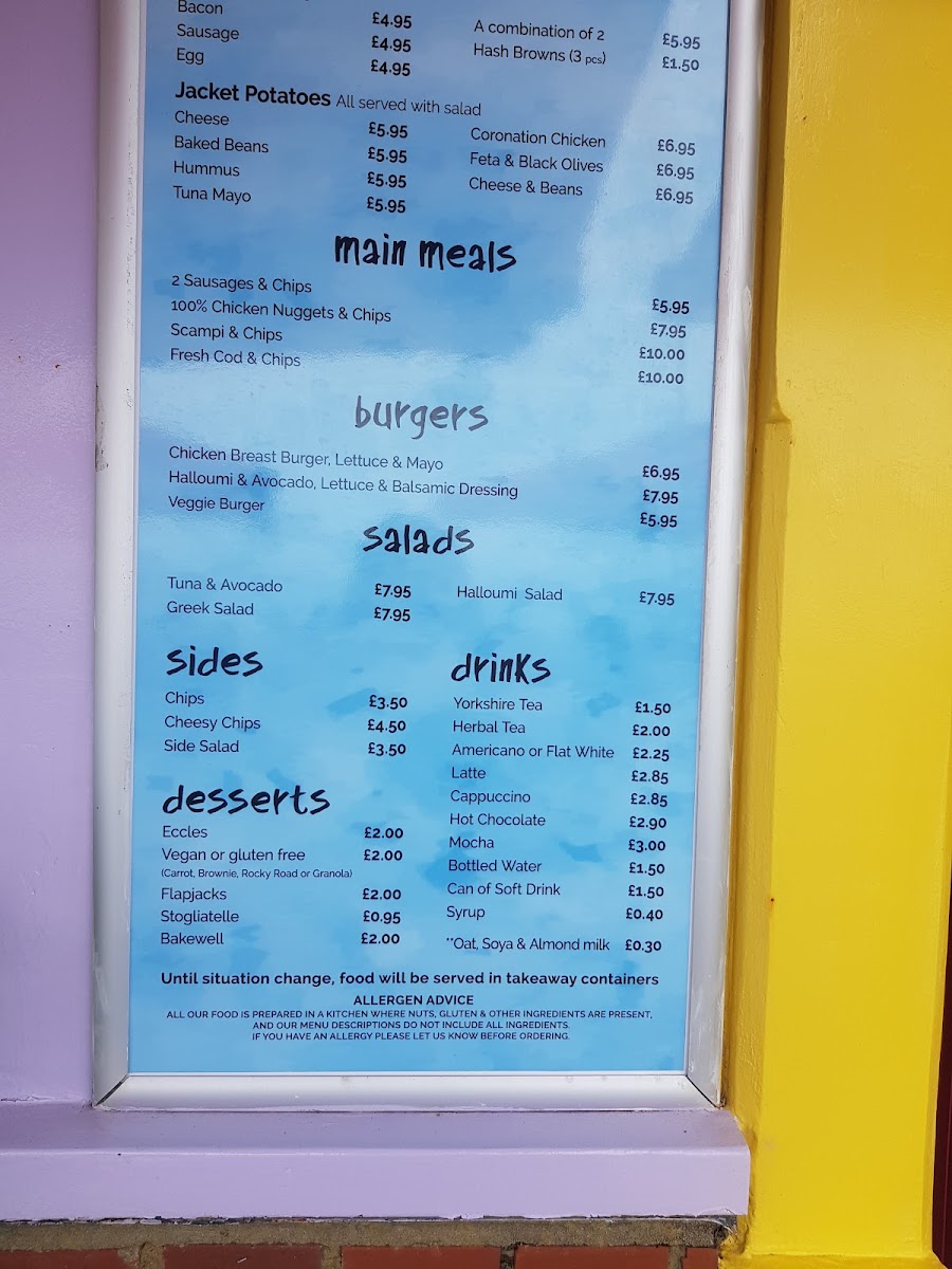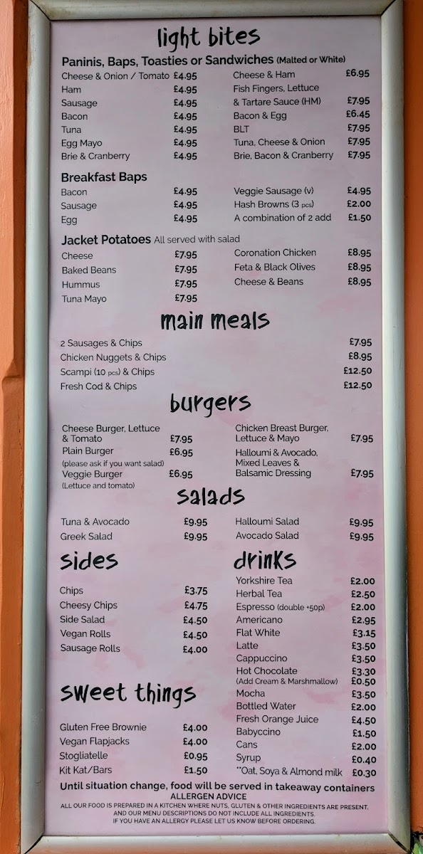 From a reviewer’s perspective, the menu at Lex’s Cafe offers a comforting selection of classic café favourites at approachable prices, with plenty of variety across the day. The Jacket Potatoes range includes options like Cheese, Baked Beans, Hummus, Tuna Mayo, and Cheese & Beans, while hearty Main Meals such as 2 Sausages & Chips, 100% Chicken Nuggets & Chips, Scampi & Chips, and Fresh Cod & Chips provide traditional British comfort food. Lighter choices can be found in the salad section, including Tuna & Avocado, Greek Salad, and Halloumi Salad, and there are simple Sides like Chips, Cheesy Chips, and Side Salad to complement any meal. For something sweeter, desserts such as Eccles, Flapjacks, Stogliatelle, and Bakewell are available, alongside Sweet Things like Gluten Free Brownie, Vegan Flapjacks, and Kit Kat/Bars. The café also serves a selection of Burgers including Chicken Breast Burger, Halloumi & Avocado, and Veggie Burger, as well as Paninis, Baps or Sandwiches with fillings like Cheese & Onion, Ham, Sausage, Bacon, and Tuna. Morning visitors can enjoy Breakfast Baps such as Bacon, Veggie Sausage, Sausage, Hash Browns, and Egg, all best paired with drinks like Yorkshire Tea, Herbal Tea, Latte, Cappuccino, or Hot Chocolate. Overall, the menu is simple, varied, and satisfying, making it a reliable spot for casual, affordable meals.